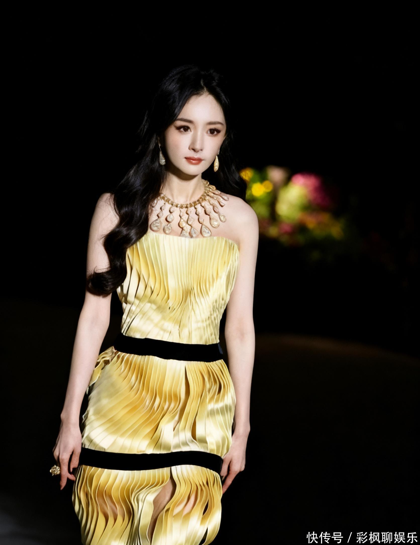 杨幂以开场嘉宾身份率先登场,一袭金色高定礼服在灯光下格外耀眼,标志性的波浪卷发搭配灵动姿态,举手投足间气场全开,低调中透着难以掩饰的奢华感 。