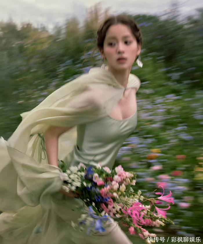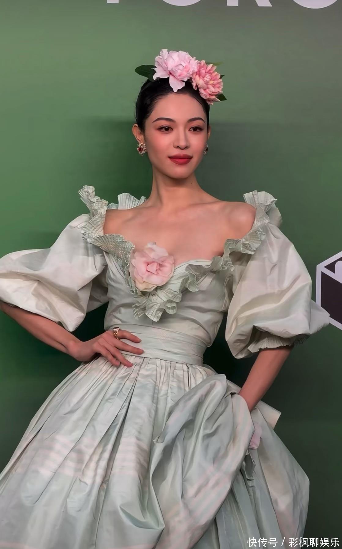 钟楚曦选了一条淡绿色蓬蓬长裙,裙摆的蓬松质感与身上点缀的粉色花朵相得益彰,仿佛从开满鲜花的庄园中走出的复古美人,清新与明艳感平衡得恰到好处。